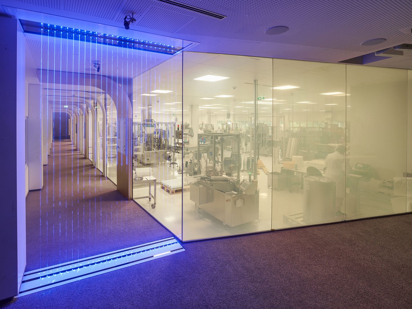 Was liegt nĂ€her als Schönheitsprodukte in einem Ă€sthetischen Ambiente zu prĂ€sentieren? Der fĂŒr Besucher konzipierte Rundgang durch die glĂ€serne âBeauty-Manufakturâ spricht alle Sinne an. Als visuelle Eye-Catcher dienen hochwertige Materialien, abwechslungsreiche OberflĂ€chen und Multimedia-Installationen. Auf der Besucherempore sorgt eine groĂflĂ€chige Videoprojektion fĂŒr einen Wow-Effekt: Das weiĂe Spezialglas wird nach Ablauf des Films durchsichtig und gibt damit den Blick auf die Produktion frei.