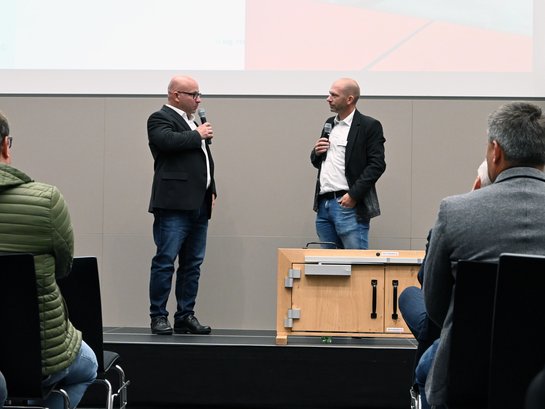 Dipl.-Ing. (FH) Josef Huber, Geschäftsführer des IBS, bot erstmals die Möglichkeit, eine reale Brandprüfung an einer Stahltür des Unternehmens Peneder für externe Personen durchzuführen, um auf die extremen Bedingungen im Brandfall hinzuweisen. Während der 30-minütigen Prüfung musste die Multifunktionstür "PENEDER HIGHLINEflat" mit einem flächenbündigen Glasausschnitt den hohen Temperaturen im Prüfofen standhalten. Josef Stockinger, Prüfexperte für Feuerwiderstand, erläuterte während der Prüfung die verschiedenen Phasen sowie die Auswirkungen auf die unterschiedlichen Materialien. Der Effekt auf Wand und Tür im Brandfall wurde erst drastisch sichtbar, nachdem die Wandkonstruktion nach der Abkühlphase für das Publikum umgedreht wurde.