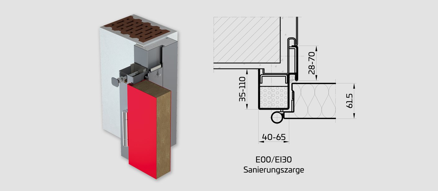 Hat eine Brandschutztüre nach mehreren Jahrzehnten ihr „Lebensende“ erreicht oder entspricht nicht mehr den Anforderungen (Stichwort Rauchschutz), muss daraus nicht unbedingt eine „Großbaustelle“ werden. Mit unserer Sanierungszarge kannst du für ein brandschutztechnisches Upgrade von Bestandstüren sorgen – ohne großen baulichen Aufwand. Das Beste: Die Sanierungszarge passt zu den Altzargen von verschiedensten Herstellern – auch wenn die alte Zarge in die Laibung einbetoniert wurde.