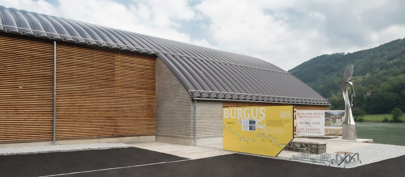 Die Schutzbauten der OÖ Landesausstellung wurden im Jahr 2018 errichtet und bewahren die wertvollen römischen Ausgrabungen seither vor Wind- und Wettereinflüssen. Geplant und realisiert wurden alle drei Objekte von Architekt DI Michael Schröckenfuchs, der die Peneder Bogendachschalen als flexible und langlebige Bedachung für die Überreste dieser römischen Bauten wählte.