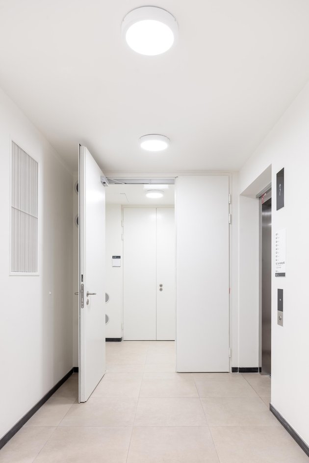 Ein weiteres Kernelement des Brandschutzes ist das EI30-Schiebetor mit zwei GehtĂŒren, das im Bereich des Aufzugs verbaut wurde. Diese Lösung trĂ€gt wesentlich zur Brandabschnittsbildung bei und erhöht die Sicherheit im gesamten GebĂ€ude, ohne die Nutzung einzuschrĂ€nken. ErgĂ€nzt wird das Konzept durch automatische AntriebstĂŒren in der Tiefgarage, die Barrierefreiheit gewĂ€hrleisten.