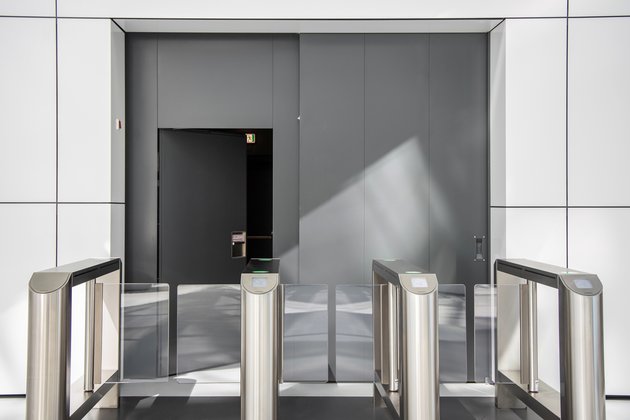 | Glasausschnitt und eingebaute Drehtür | ||||||