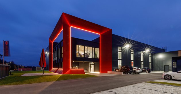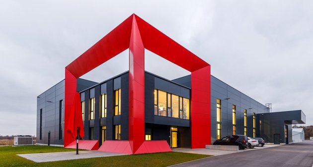 Für das stark wachsende Verpackungsunternehmen Lechpack baute Peneder eine 400 m2 große Produktion und ein repräsentatives, knapp 300 m2 großes Büro. Ein beeindruckender roter Rahmen umspannt dabei den Bürotrakt und verleiht dem Baukörper Raum und Größe. Am neuen Standort werden einfache Umzugskartons und Versandkartonagen bis hin zu maßgeschneiderten Wellpappzuschnitten hergestellt und entwickelt.