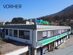 Vorher-Nacher-Vergleich: Altbestand und Neubau des Headquarters von SynPharma.