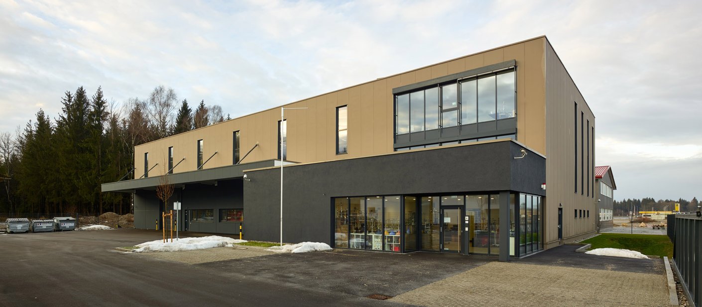 FĂŒr den hochmodernen Gewerbebau erarbeitete das Netzwerk aus Peneder Bauexperten und Logistikplanern ein raffiniertes Logistik-Konzept, welches reibungslose MaterialflĂŒsse dank automatischer Verpackungsanlage, Palettenlager und dreigeschossigem Kommissionierlager ermöglicht.