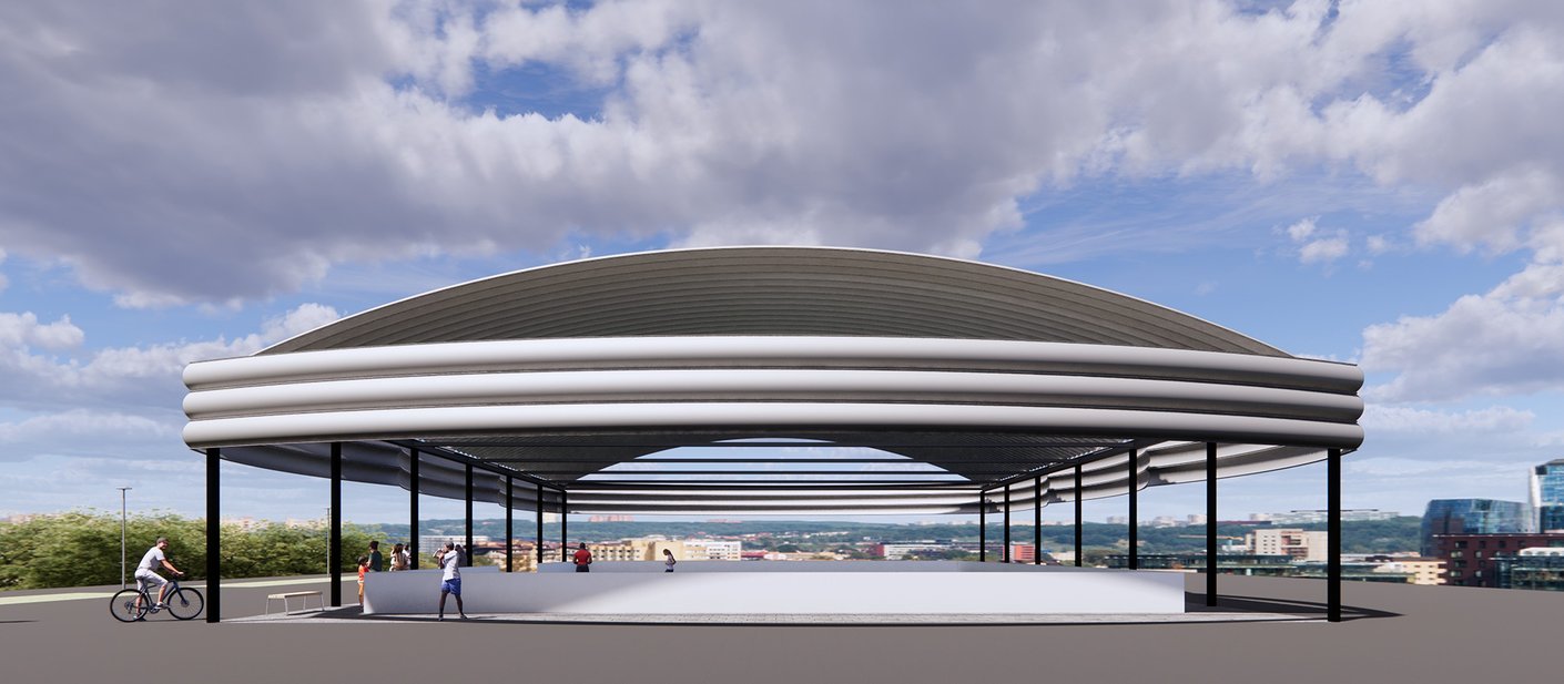 Elegante und aussergewöhnliche Ăberdachung fĂŒr Spiel- und SportplĂ€tze im Freien