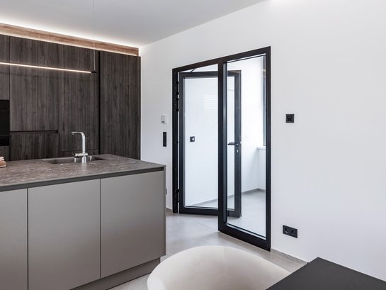 Für die offenen und lichtdurchfluteten Bereiche, wie die Lobby, kamen hochwertige Alu-Glas-Türen und grossflächige Fixverglasungen in der Brandschutzklasse EI290/EI230 zum Einsatz. Ihre filigranen Profile fügen sich nahtlos in das moderne Design ein und sorgen für ein helles, einladendes Raumgefühl. Ein Highlight ist die präzise ausgeführte 90°-Eckverglasung, die nicht nur funktionale Anforderungen erfüllt, sondern auch ästhetisch überzeugt.