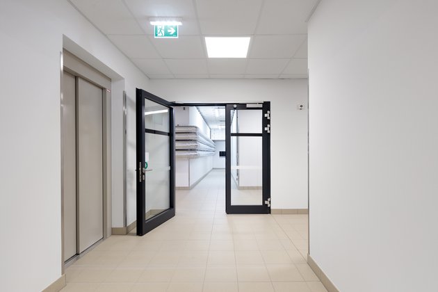 Peneder durfte bei diesem Projekt eine grosse Material- und Funktionsvielfalt an Drehflügeltüren einsetzen. Von hochwärmegedämmten und einbruchsicheren Alu-Glas-Türen im Aussenbereich über Brandschutztüren im Innen- und Aussenbereich bis hin zu einfachen Stahltüren bei Müllräumen und Schachtwänden: Die gebotene Türenvielfalt konnte in jedem Abschnitt des Gebäudes harmonisch in das vorgegebene Architekturkonzept integriert werden.