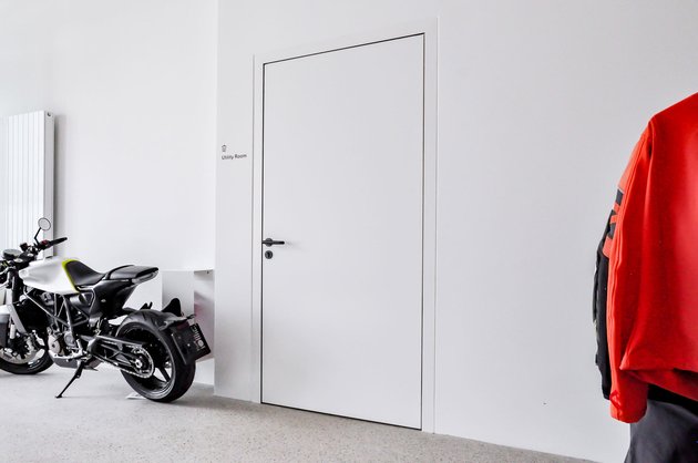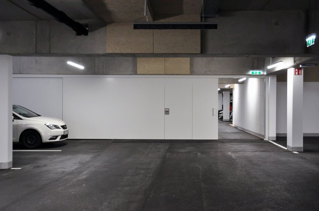 Der Materialmix in dem Projekt ist vielfältig und umfasst unter anderem Aluminium-Glas-Türen, Brandschutzverglasungen mit Nurglas-Stössen, flächenbündige Multifunktionstüren aus Stahl sowie Holztüren in Fichte. Grosse Schiebetore in Teleskopausführung und mit eingebauter Gehtür runden das Gesamtbild ab und sorgen in der Motorrad-Werkstatt und Tiefgarage für den vorgeschriebenen baulichen Brandschutz.