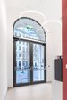Im Zentrum stehen vier grossformatige Rundbogenportale, die als prĂ€gendes Element die historische Formensprache aufnehmen. Dazu zĂ€hlen zwei Innenportale, ein zweiflĂŒgeliges Aussenportal sowie eine grossflĂ€chige Fixverglasung im CafĂ©bereich. ErgĂ€nzt werden sie durch unterschiedliche TĂŒranlagen mit ein- und zweiflĂŒgeligen AusfĂŒhrungen, Seitenteilen und Oberlichten.