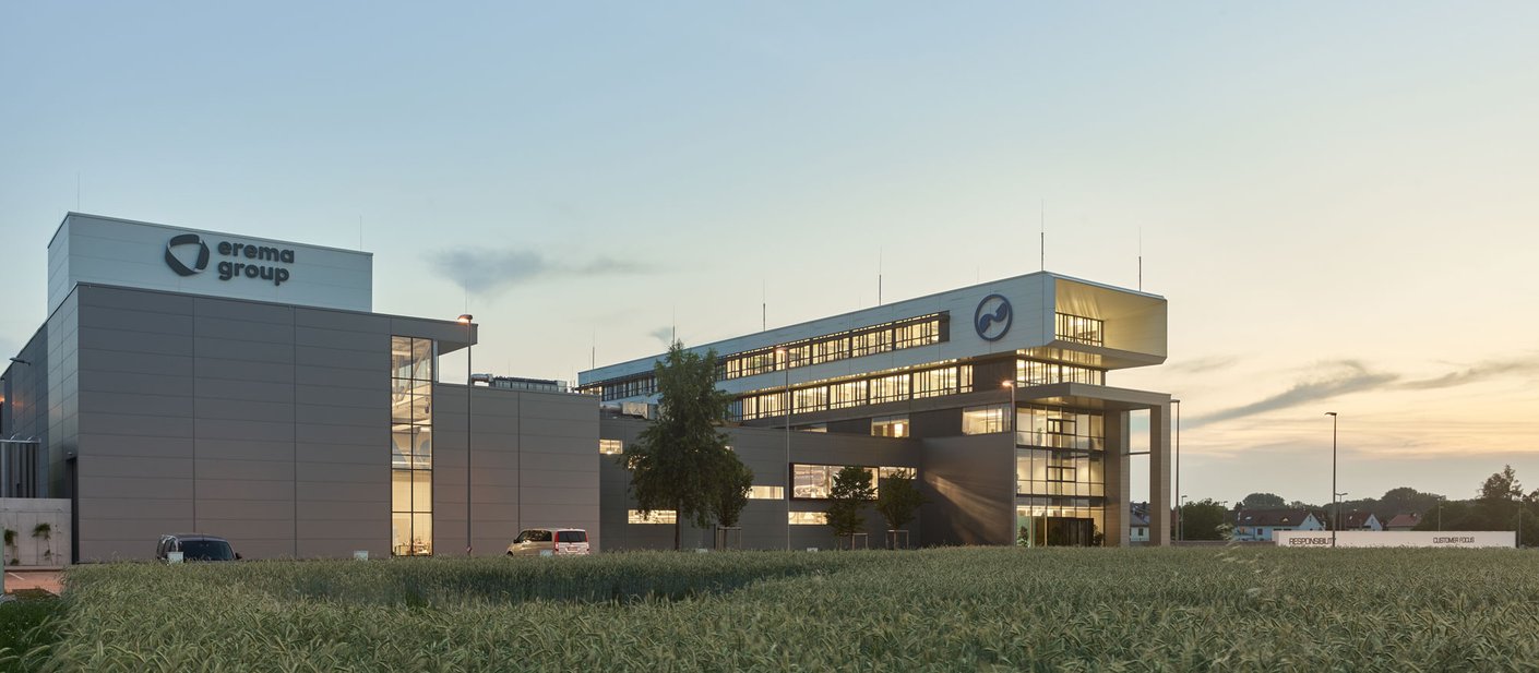 Vor 16 Jahren fand der erste gemeinsame Planungs-Workshop von Peneder und Erema statt. Die erste Baustufe des Masterplans beinhaltete den Neubau eines dreistöckigen, unterkellerten Bürogebäudes mit einer Gesamtfläche von 2800 m². Des Weiteren wurden ein Hochregallager und der Versandbereich mit insgesamt 2200 m² ebenso wie das Büro an den damaligen Bestand angebaut.