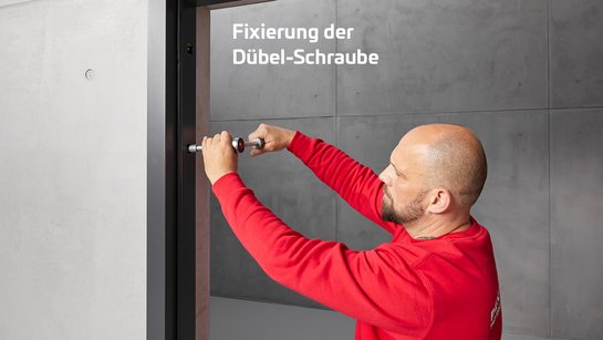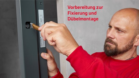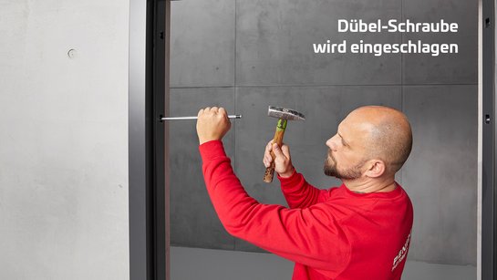 - Die Zarge wird 8-fach mittels Dübel-Schraube an den Wandbildner verschraubt