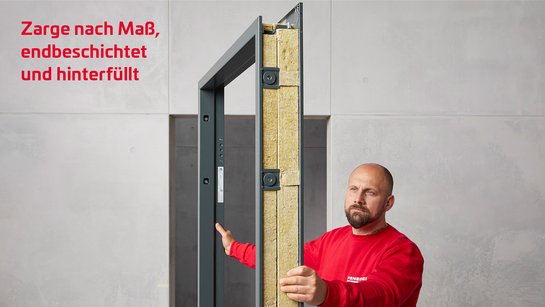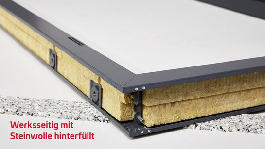 - Für die bereits mit Steinwolle hinterfüllte Zarge ist kein Zuschneiden der Füllung oder gar Ausmörteln vor Ort ist mehr notwendig – Verschmutzungen und Abfall bleiben somit aus