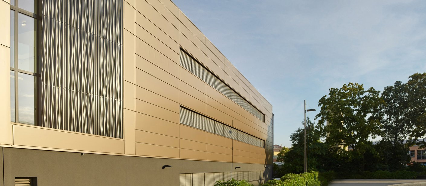 Besucher und GeschĂ€ftspartner werden bei ihrer Ankunft von einem eleganten, dreigeschoĂigen GebĂ€ude mit metallischer Fassade im Bronzeton in Staunen versetzt. Die klare Formensprache drĂŒckt BestĂ€ndigkeit aus. GroĂe einladende GlasflĂ€chen und schlanke StĂŒtzen vermitteln ein GefĂŒhl der Leichtigkeit.