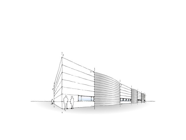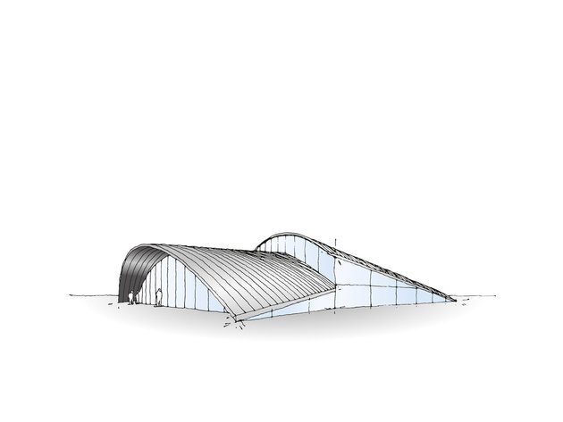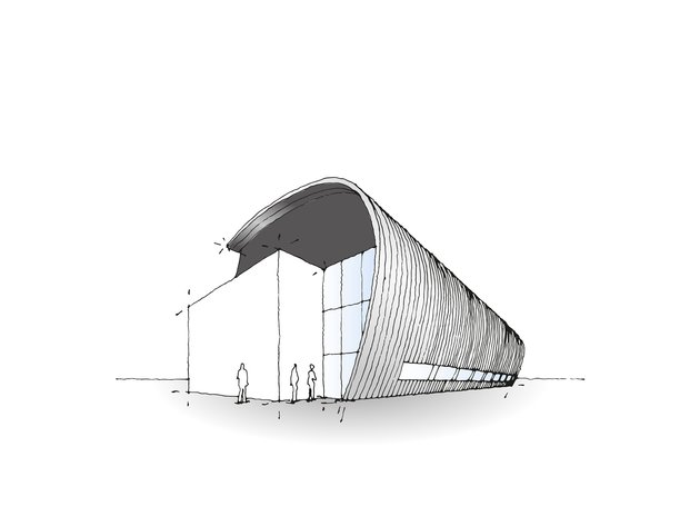 "The idea behind my design was to use the arched shells as a façade and as the roof to kill two birds with one stone. So I pulled the arch down from the roof over the façade. The contrasts of round and angular that are combined in the building also create a sense of architectural tension."